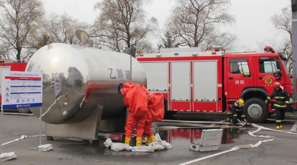 本次演練,模擬公司乙醇儲罐發(fā)生泄漏事故,公司立即啟動《危險化學(xué)品泄漏事故專項(xiàng)應(yīng)急預(yù)案》,并向雞冠區(qū)應(yīng)急管理局報告事故情況。雞冠區(qū)應(yīng)急管理局啟動區(qū)應(yīng)急預(yù)案,公安、消防、急救中心等政府救援部門以最快的速度趕赴現(xiàn)場,成立了以區(qū)政府為中心的應(yīng)急指揮中心,在區(qū)領(lǐng)導(dǎo)的指揮下,在消防中隊(duì)等社會力量的不懈努力下,險情得到控制。
