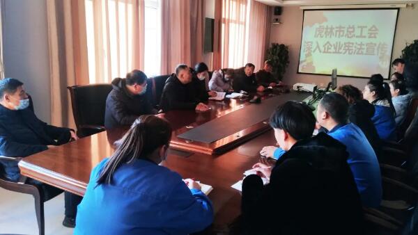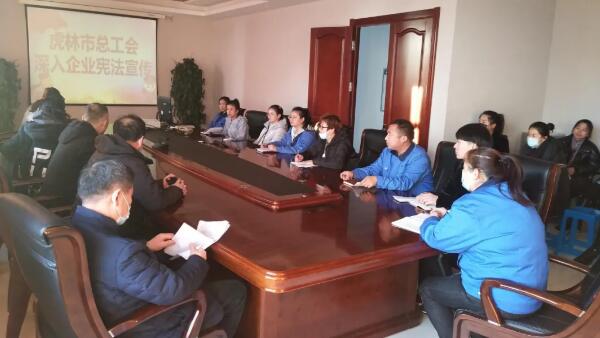 2020年12月4日是第七個(gè)“國(guó)家憲法日”,也是第三個(gè)“憲法宣傳周”。為了加強(qiáng)憲法宣傳,講好中國(guó)憲法故事,推動(dòng)憲法宣傳社會(huì)面全覆蓋,讓?xiě)椃ň襁M(jìn)基層,樹(shù)立法治國(guó)家良好形象?;⒘质锌偣?huì)副書(shū)記王寶銀一行來(lái)到珍寶島藥業(yè)(虎林),開(kāi)展了《憲法》進(jìn)企業(yè)宣講活動(dòng),公司工會(huì)副主席王仙艷熱情接待,組織員工聆聽(tīng)、學(xué)習(xí)。