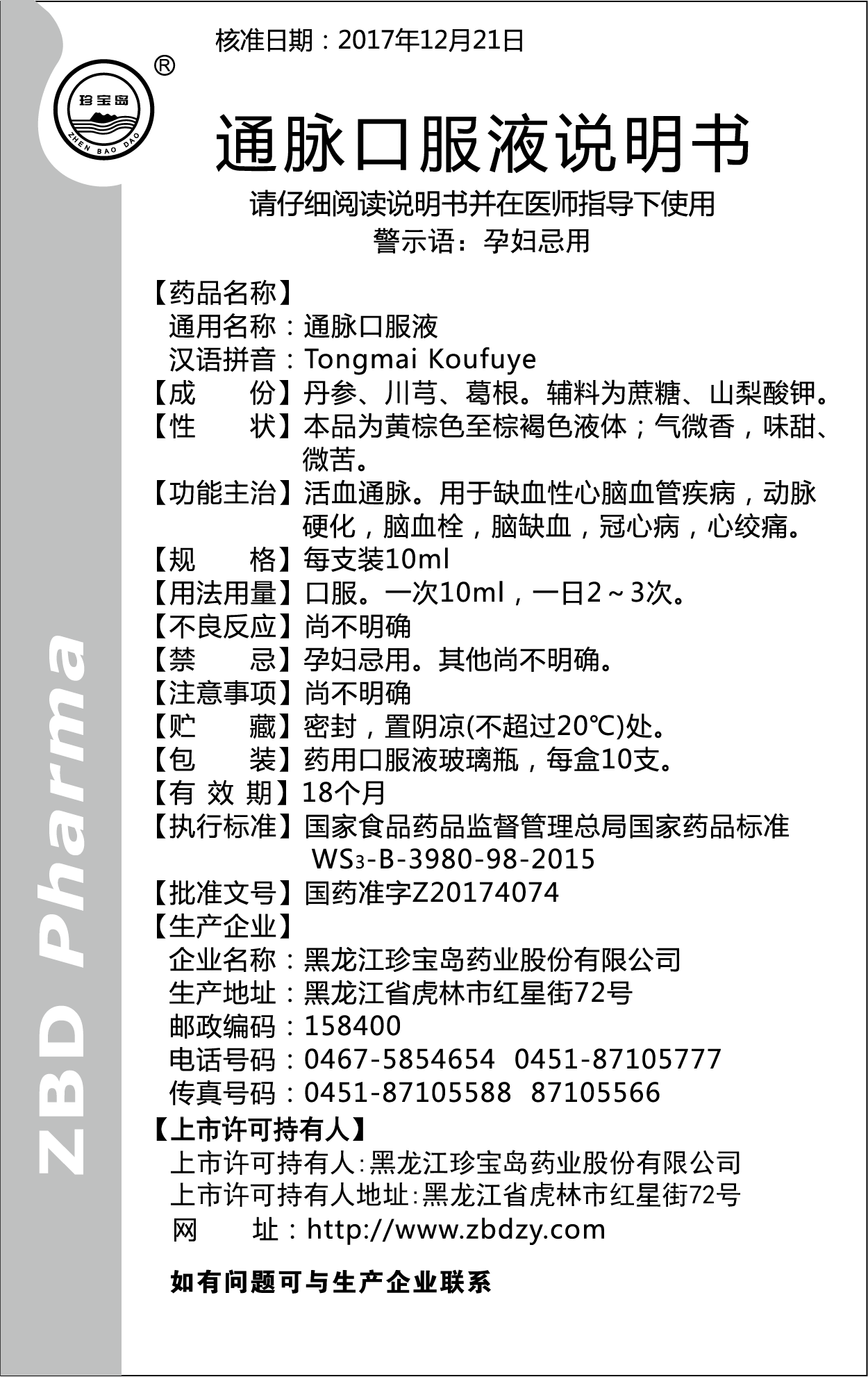 產(chǎn)品名稱:通脈口服液