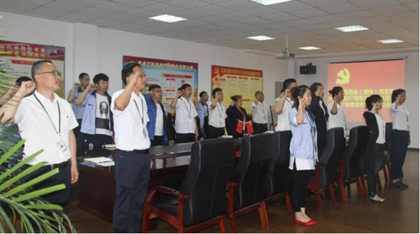 黨員們向面莊嚴、神圣的黨旗,舉起自己的右拳,一起重溫了入黨誓詞。隨后,大家一起觀看了“全國優(yōu)秀共產(chǎn)黨員”廖俊波同志的先進事跡視頻,學(xué)習(xí)他牢記黨的囑托,盡心盡責、苦干實干的精神,學(xué)習(xí)他對黨忠誠,心系群眾、忘我工作、無私奉獻的優(yōu)秀品質(zhì)。黨支部書記號召廣大黨員、干部、職工要向廖俊波同志學(xué)習(xí),時刻牢記黨旗下的誓言,不忘初心、扎實工作、廉潔奉公,身體力行把黨的方針政策落實到各個部門、各個車間、各個崗位,一心一意為企業(yè)發(fā)展,一舉一動為質(zhì)量負責,無愧于“共產(chǎn)黨員”這個稱號。